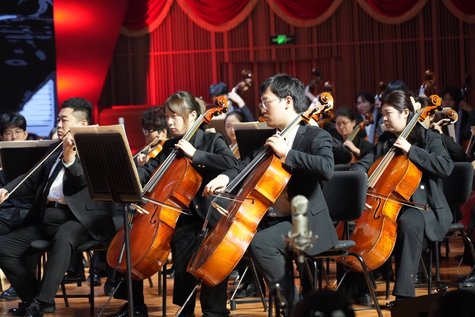 在哈尔滨音乐学院音乐厅音乐大思政课现场,乐团在进行演奏。新华社记者 王鹤 摄谈起“思政+音乐”的育人模式,哈尔滨音乐学院副院长崔志林表示,学院已不是首次尝试。将红色文化、理论宣讲与交响乐、声乐展演融合,构建沉浸体验、互动共鸣的教学场景,能增强课堂的代入感和感染力,“让听课的学生们不舍得低头,不愿意分神”。