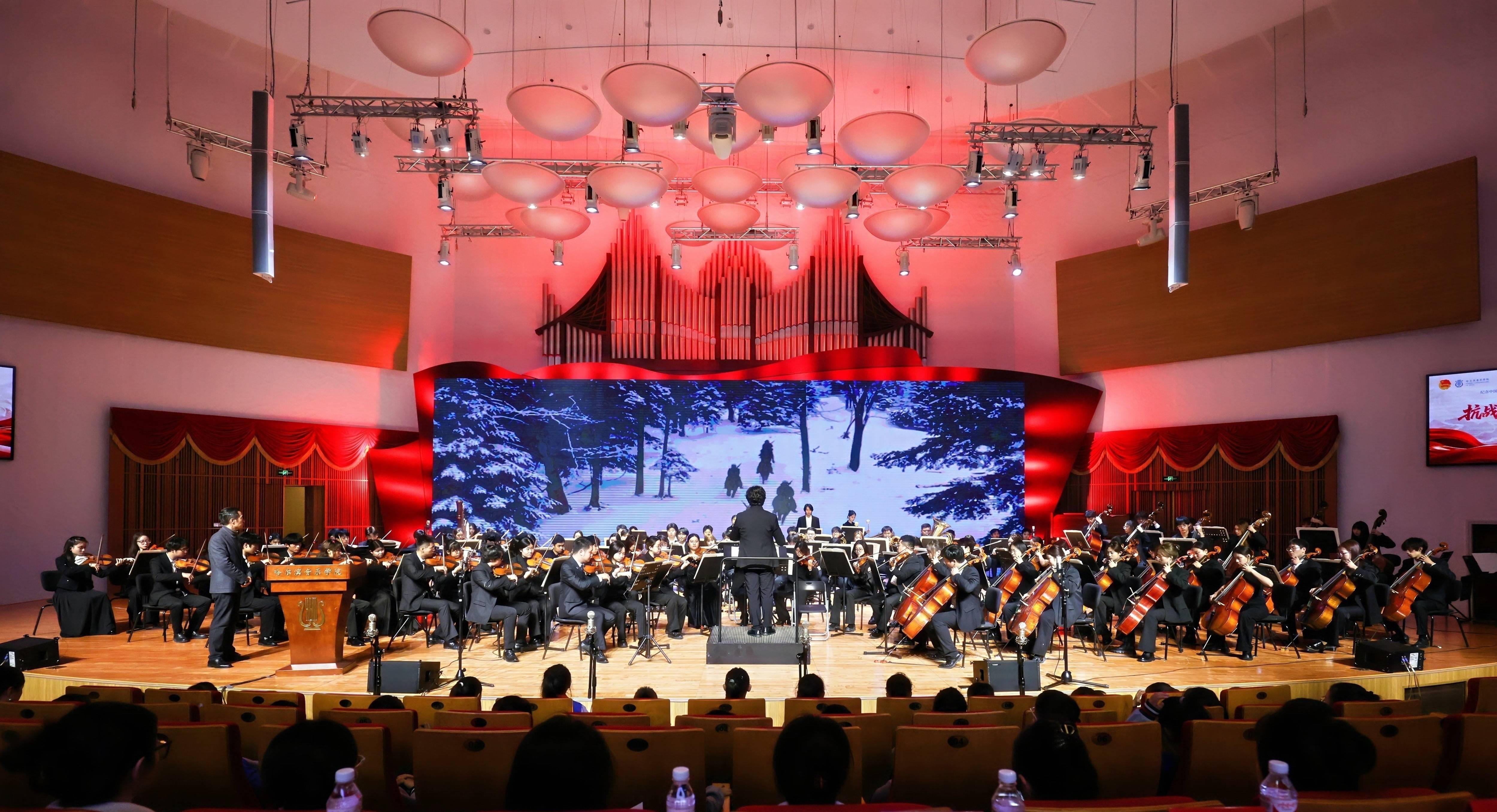 这是哈尔滨音乐学院“抗战乐章 和平交响”音乐大思政课现场。新华社发近一个小时的演奏,管弦系学生史玖瑒眼中闪烁着光芒:“在此之前,乐团多次排练,很注重对红色经典作品的打磨。随着主讲老师的加入,讲述了九一八事变后中国人民艰苦卓绝的抗战故事,我意识到,我们的演奏是在提醒大家铭记历史。”