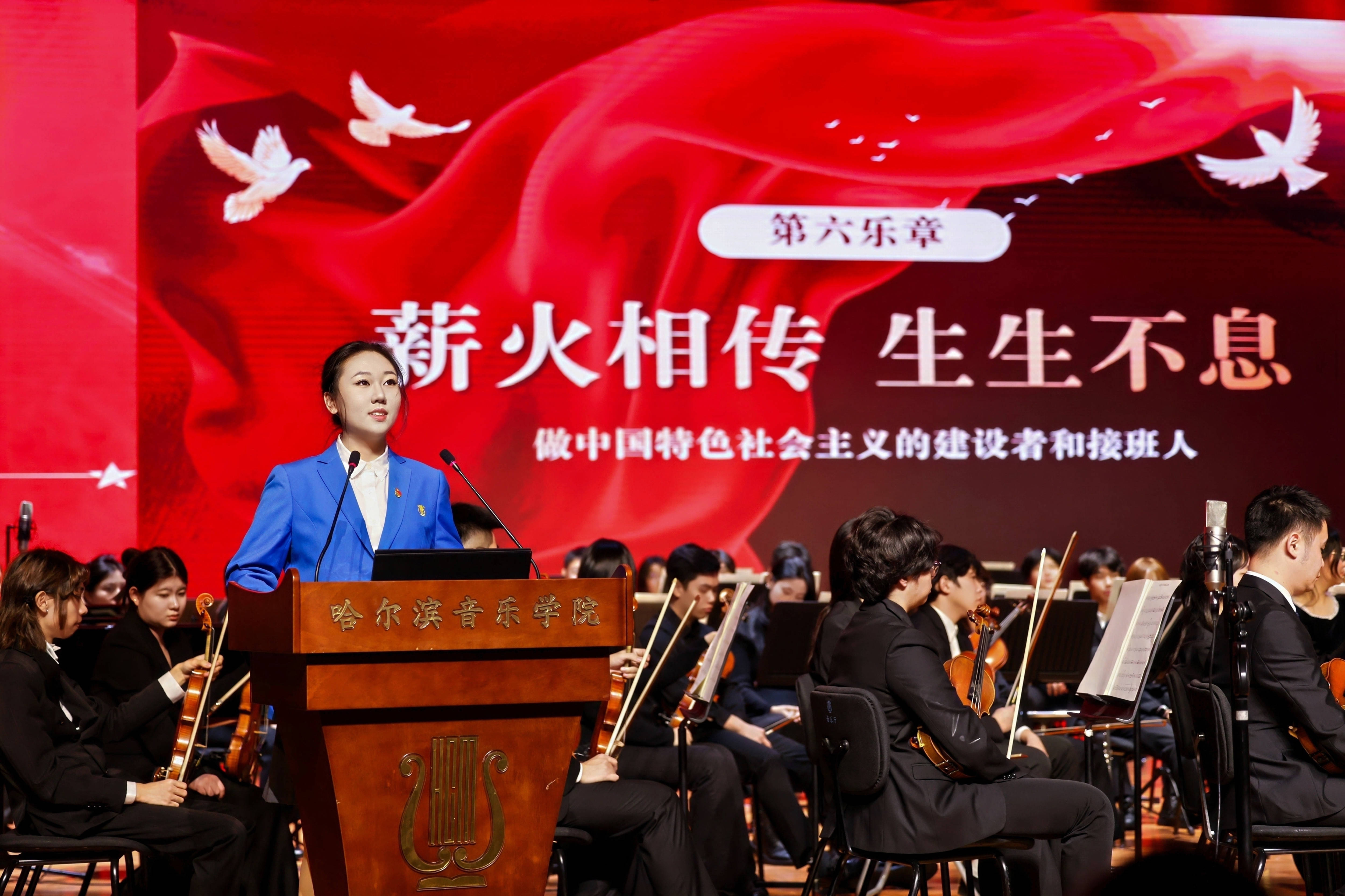在哈尔滨音乐学院音乐大思政课现场,音乐学系学生刘怡然在讲述最后章节。新华社发临近傍晚,在全场合唱《歌唱祖国》中,这堂音乐大思政课落下帷幕。掌声雷动,音符的余韵仍在回荡,在场学子久未离席。